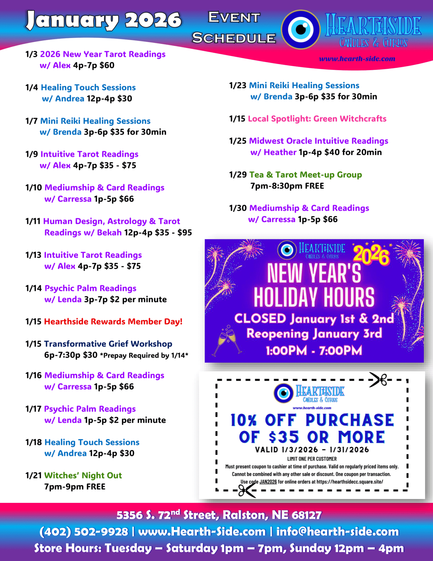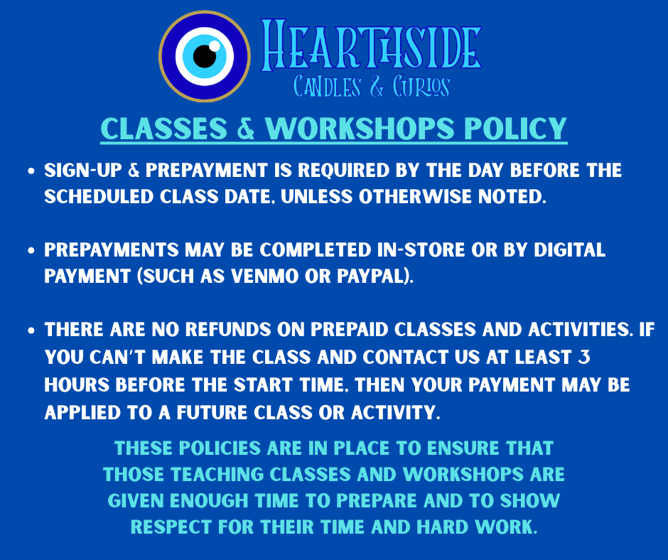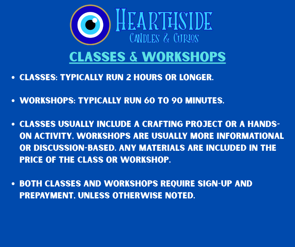 We’re more than just a store! We host local intuitive readers and spiritual practitioners, including Tarot, Oracle, and Rune Readers, Reiki healers, and more. We also feature classes on many topics, such as Tarot, Witchcraft, Psychic Development, and other mystical subjects!
